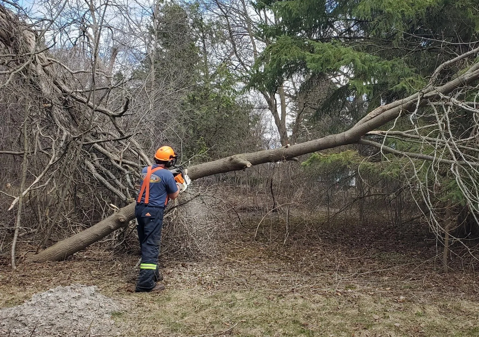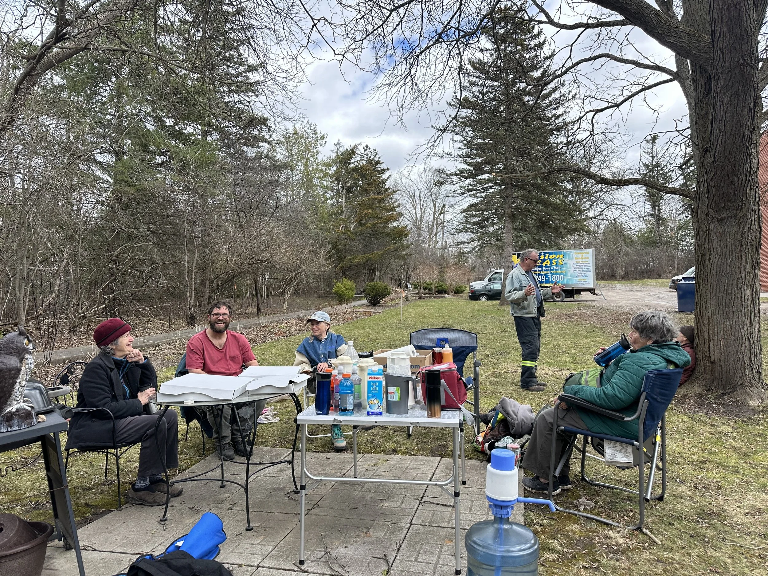 Cleanup after the ice storm of March 30, 31. 736 Maryland Ave. was hit badly, with much of the cedar hedge on the street damaged. Erika Steinhubl describes the cleanup this way. How do we show the earth that we are good stewards? We explore it with our hands, our eyes, our ears, our nose and yes, our tongue. This past Earth Day, April 22, nine members of KCC came together to clear away the many fallen branches that resulted from the ice storm.. We climbed up tree trunks to saw off precariously hanging limbs. We smelled the sap from the cedars as we fed the branches into the wood chipper to make mulch. We saw and smelled worms in the loamy soil as we used a tree puller to uproot buckthorn bushes from the area that will be our future patio and gardens. We used chain saws to saw 24-inch diameter uprooted tree trunks into pieces we can use in future bonfires. We heard birds chattering as they searched for food among the fallen limbs. We touched the bark of the birch, maple, pine, spruce and cedar. We tasted the sweet sap oozing from a wound in the maple and sticky sap from the pine and spruce. We breathed deeply the clean fresh air and imagined our home here in two years' time. It's time to come to visit your new home, this piece of earth, and get acquainted. Why not come by during a Super Weekend?